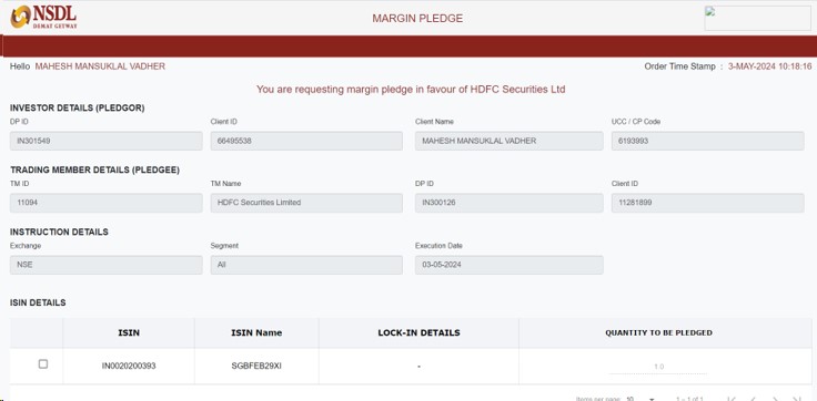 To meet exchange mandates, 50% of the margin for F&O positions must be maintained in cash or cash equivalents. Pledged SGBs, G-Secs, T-bill and select Liquidbees fulfill this requirement, reducing the need for cash in the trading ledger while earning interest simultaneously, offering a double benefit to the client.