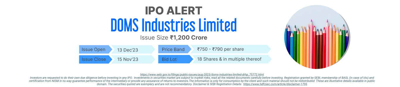 Incorporated in 2006, DOMS Industries Limited is a stationery and art product company primarily engaged in designing, developing, manufacturing, and selling a wide range of these products under the flagship brand, DOMS along with other brand/sub-brands including C3, Amariz, and Fixyfix.