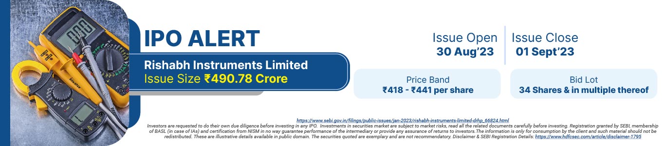 Rishabh Instruments IPO is a Book Built Issue. The IPO total issue size is Rs 490.78 Cr. The Rishabh Instruments IPO price is ₹418 to ₹441 per share. The IPO will list on BSE, NSE.