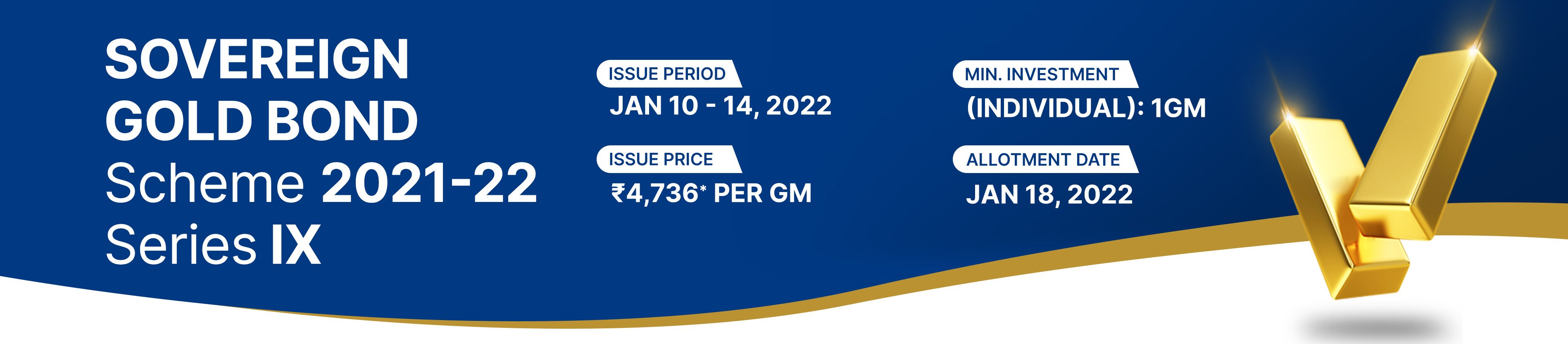 The Sovereign Gold Bond Scheme 2021-22 – Series 9 will be open for subscription from Monday, January 10, 2022 to Friday, January 14, 2022.