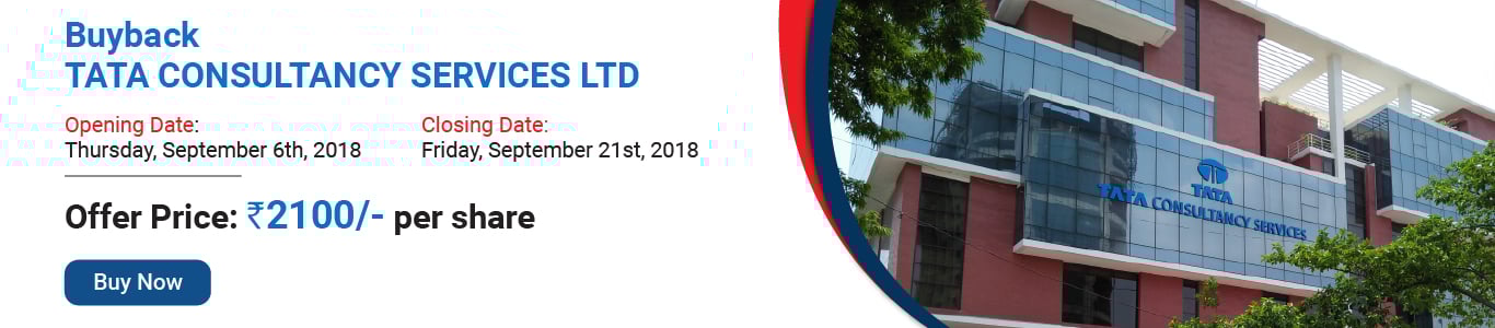 Tata Consultancy Services Limited has offered to buyback fully paid-up Equity Shares of the Company, up to 7,61,90,476 shares from the Shareholders/beneficial owners of Equity Shares as on August 18, 2018 (Record Date), at a price of ₹ 2,100/- per Equity Share, for an aggregate consideration not exceeding ₹ 16,000/- crore.